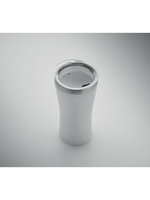 Kisméretű, duplafalú termoszpohár újrahasznosított rozsdamentes acélból (90% újrahasznosított rozsdamentes acél és 10% rozsdamentes acél), ivónyílásos, átlátszó PP fedéllel. Űrtartalom: 160 ml.