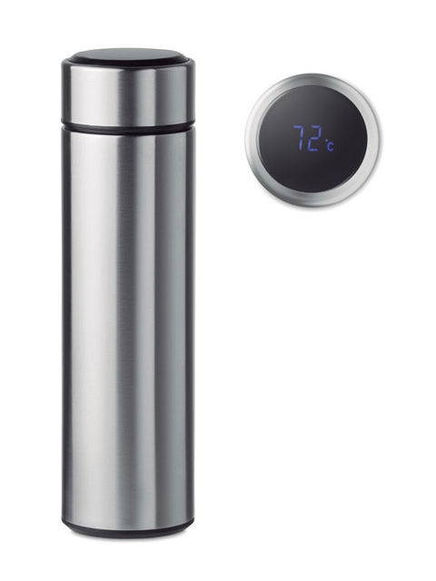 Duplafalú, szivárgásmentes rozsdamentes acél termosz teaszűrővel. A fedélben beépített érintős hőmérővel. A működéshez szükséges 1 cserélhető CR2032 elemmel szállítjuk. Űrtartalom 450 ml. Szivárgásmentes.