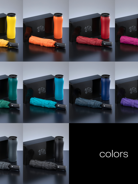 Ez az úton lévők számára készült praktikus készlet egy a Primo kollekcióból származó vákuumos termobögrét és egy összecsukható automata esernyőt tartalmaz. A légmentesen záródó termobögre kiváló minőségű rozsdamentes acélból készült, és matt porfestékkel van bevonva, ami nemcsak tartósságot, hanem remek megjelenést is biztosít számára. Dupla fala akár 6 órán át is tökéletesen megőrzi az ital kívánt hőmérsékletét. A pattintós záródás révén pedig itala forró marad és biztonságban lesz. . A termék élelmiszerrel való érintkeztetést megengedő tanúsítvánnyal rendelkezik és BPA-mentes. Az összecsukható esernyő a Primo kollekció kiváló minőségű terméke, amely automatikus záró- és nyitórendszerrel (DAS) és szélvédő rendszerrel van felszerelve. Előnye a masszív fémváz, az üvegszál bevonatú bordák, a PU-bevonatú fogantyú. A termék REACH tanúsítvánnyal rendelkezik. A készlet egy elegáns ajándékdobozba van csomagolva.