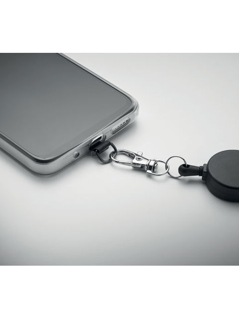 Visszahúzható telefon- vagy kártyatartó ABS-ből, alumínium karabinerrel. A karabiner hegymászásra, védőfelszerelés céljára nem alkalmas.