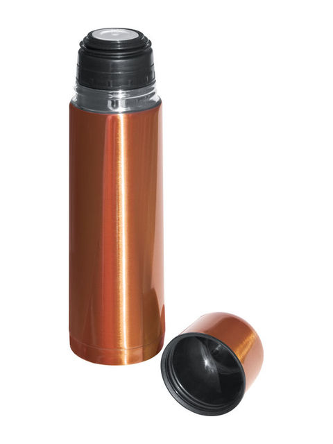 500 ml űrtartalmú duplafalú vákuumszigetelt termosz, gyors zárral, fém bögrével, szivárgásmentes.