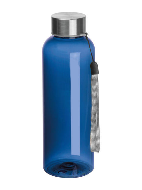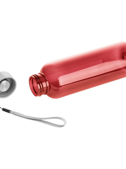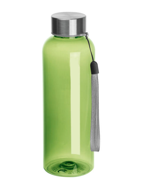 500 ml űrtartalmú újrahasznosított PET-ből készült, BPA mentes kulacs, rozsdamentes kupakkal, csuklópánttal, szivárgásmentes. Szénsavas itallal nem használható.
