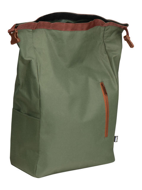 Trendi RPET anyagból készült hátizsák, párnázott vállpánttokkal, első cipzáras rekesszel, oldalsó zsebbel, felül csattal és cipzárral záródik.