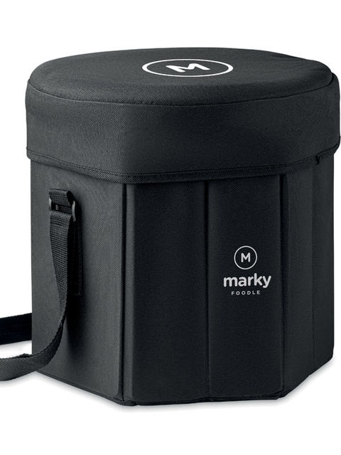 600D poliészterből készült összecsukható ülőke vagy asztal, alumíniumfóliával ellátott, szigetelt hűtőtáskával és vállpánttal. Maximális teherbírás 80 kg.