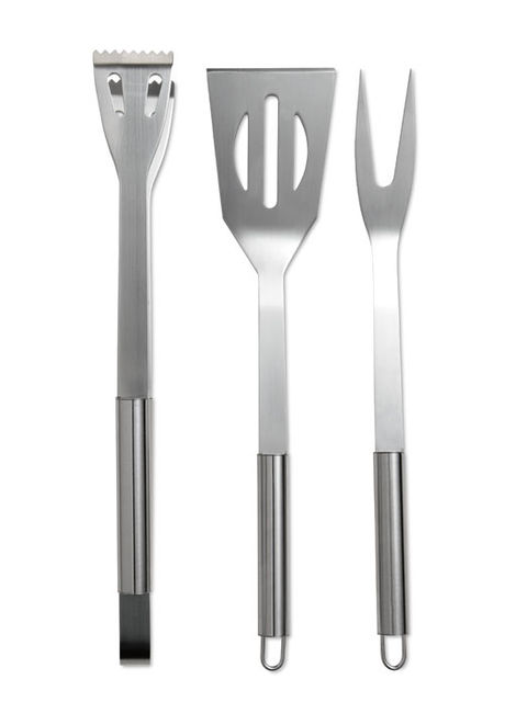 3 részes rozsdamentes acél grillező eszköz készlet. 600D poliészter cipzáras tokban.