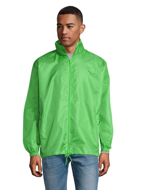 SOL'S SHIFT uniszex széldzseki, 210 g/m². 100% 210T poliészter. Végig cipzáras, gallérba rejthető kapucni húzózsinórral. Húzózsinórral állítható derékrész, gumis kézelő, 2 cipzáras zseb. Méret: S-3XL.