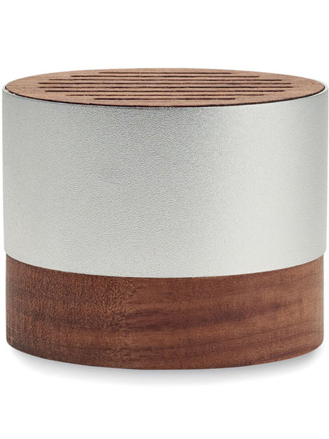 5.3 vezeték nélküli hangszóró újrahasznosított alumínium házban, a tetején és talpán diófa részletekkel. 1 újratölthető 300 mAh lítium-ionos akkumulátort tartalmaz. Teljesítmény: 3W, 3 Ohm és 5V. Üzemidő kb. 3 óra.