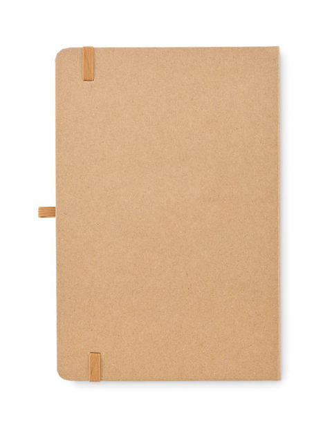 A5 jegyzetfüzet karton borítóval, 160 sima oldal (80 lap) újrahasznosított papírból, 25 lapos öntapadós jegyzetelő és 25 oldaljelölő. Elasztikus zárópánt és tolltartó hurok.