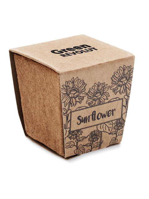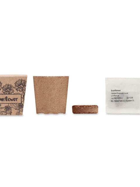 Biológiailag lebomló, tőzeg ültetőcserép napraforgó magokkal. EU-ban készült (Helianthus debilis). Ültetőközeg koronggal szállítjuk.