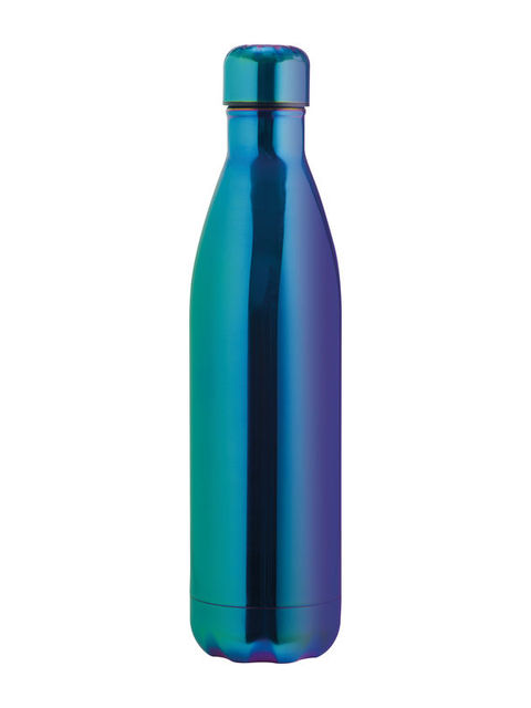 Rozsdamentes acél vákuumszigetelt ivópalack 750 ml űrtartalommal, mely szivárgásmentesen zárható. A kulacs fényben a szivárvány színeiben ragyog.