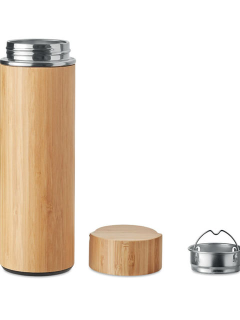 Duplafalú, rozsdamentes acélból és bambuszból készült termoszpalack. Belsejében egy teaszűrő is található, így frissen elkészítheti kedvenc teáját. A 400 ml-es kapacitással egész nap hidratált maradhat. Szivárgásmentes. A bambusz természetes anyag, termékenként szín- és méretbeli eltérések jelentkezhetnek, ami befolyásolhatja a dekoráció végső eredményét. FSC®-certified | FSC 100%, N5.7, FSC-C213206