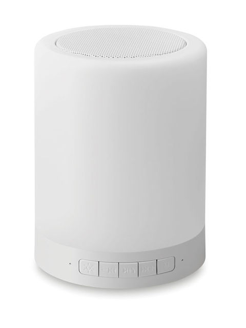 Asztali hangszóró telefon kihangosító funkcióval. SD kártya olvasó. Érintéssel szabályozható a fény színe és erőssége. 6 különböző szín. Újratölthető 2000 mAh lítium-ion elemmel. Teljesítmény: 3W. Üzemidő kb. 2 óra.