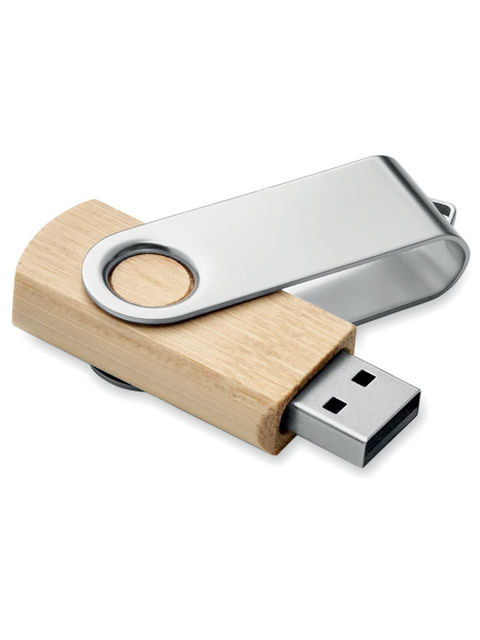 16 GB-os USB 2.0 pendrive bambusz burkolattal és elfordítható fém védőfedéllel. Forgassa el a fedelet és csatlakoztassa az USB porthoz a használat megkezdéséhez. A bambusz természetes anyag, színében, mintázatában és méretében esetenként eltérő lehet.