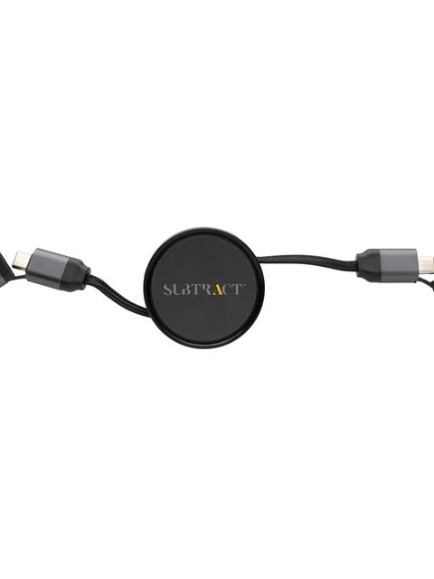 Visszahúzható töltő- és adatkábel RCS (Recycled Claim Standard) újrahasznosított alumíniumból, újrahasznosított TPE-ből és újrahasznosított PET-ből. Teljes újrahasznosított anyagtartalom: 68% a termék összsúlya alapján. Az RCS-tanúsítvány biztosítja az újrahasznosított anyagok ellátási láncát. Az alumínium nem veszíti el tulajdonságait az újrahasznosítási folyamat során és végtelenül újrahasznosítható. Kettős bemeneti csatlakozóval: USB A és C típusú. Háromszoros kimenet: Apple Lightning/micro és C típusú, összesen 6 töltési lehetőséget kínálva. RCS, fonott, újrahasznosított PET kábelekkel amelyek hossza 100 cm teljesen kihúzva. FSC® mix csomagolásban. Töltésre, szinkronizálásra alkalmas és autós lejátszással kompatibilis (kizárólag C típusról C típusra). Támogatja a gyors töltést akár 60W-ig.