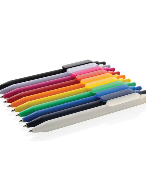 Egyedi kialakítású, egy nyakkendőt viselő tollra emlékeztet, ha jobban megnézzük a klipszet és a tollszárat. A 91% újrahasznosított ABS-ből készült toll a tartósságot és a stílust ötvözi. Sima, gumírozott szilikon markolattal a tollszár körül a további kényelem érdekében ezáltal is biztosítva a prémium írásélményt. A dugattyú, a klipsz és a tollhegy matt bevonata elegáns megjelenést kölcsönöz, míg a kék tinta egyenletesen írást biztosít akár 1200 méterig. A könnyű használat érdekében kattanó mechanizmussal működik.