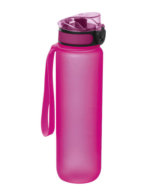 Tritánból készült BPA mentes kulacs, 1 l űrtartalmmal, szivárgásmentes kupakkal, kényelmes csuklópánttal.