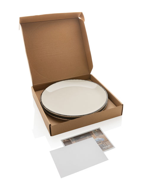 Terítsen meg egy gyönyörű és barátságos asztalt ezzel a kerámia tányérral! Az Ukiyo tányérok ideálisak az ételek ízléses tálalásához. A tányér semleges színű, fekete szegéllyel, jól mutat minden otthonban! Kombinálja a tányért más Ukiyo tányérokkal és tálakkal, hogy egyedi és személyre szabott terítéket hozzon létre. A termék mikrohullámú sütőben használható és mosogatógépben mosható, 2 db-os ajándékdobozban érkezik. Mérete: 28 cm-es átmérő.