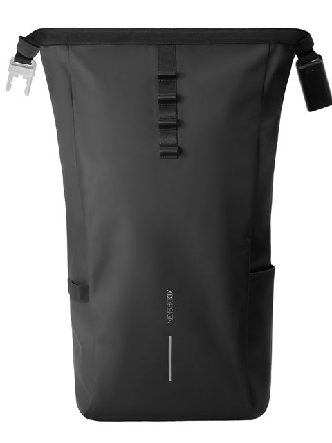 Ideális útitárs, amely biztonságot és kényelmet nyújt. A főrekesz feltekerésével és a megerősített kombinációs zárral történő rögzítésével a hátizsák teljes zárást biztosít, amellyel egy lefixált tárgy köré is rögzíthető. A hátizsák könnyen rögzíthető a kerékpárvázhoz. Belül, a párnázott rekeszekben egy 16"-es laptop is elfér, míg a hálós zsebek rendszerezik az alapvető dolgokat. A minimalista külső kiváló minőségű, vízálló és tartós PU anyagból készült, míg a bélés AWARE™ nyomjelzővel ellátott. A valódi újrahasznosított anyag használata garantált. 32% újrahasznosított anyagtartalom. Bejegyzett dizájn®
