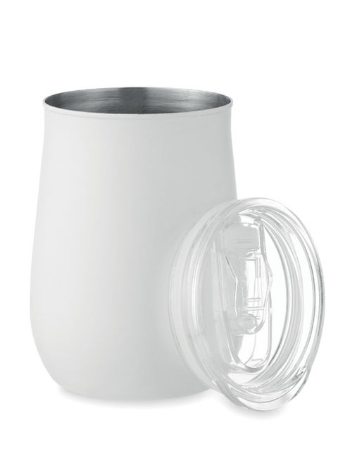 Újrahasznosított rozsdamentes acél (90% újrahasznosított rozsdamentes acél, 10% rozsdamentes acél), porszórt bevonatú pohár fedővel, csúsztatható ivónyílással ellátott fedéllel. Űrtartalom: 500 ml. Mivel ez egy szimplafalú bögre, hőátadás lehetséges.