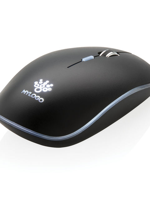 Kényelmes kialakítású, többször feltölthető vezeték nélküli egér világító logós felülettel a céges üzenet kiemeléséhez. A termék 300 mAh lítium polimer akkumulátorral rendelkezik mely 3 óra alatt tölthető. A kapcsolódási sebesség 125 Hz a könnyen használható USB vevőegység segítségével. Ez része a terméknek. Jobb, bal valamint középső, görgetős egérgombbal. A termék érzékenysége igény szerint állítható. Minden új Windows valamint Mac operációs rendszerrel kompatibilis.