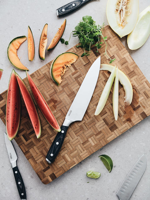 Egy szakácskésből és egy hámozókésből álló készlet. A kések X50CrMoV15 német acélból készülnek pakkafa markolattal. A könnyű fogású markolat és a penge kiváló egyensúlya kényelmesebbé és könnyen használhatóvá teszi a kést. Szakácskés: 20 cm-es penge. Hámozókés: 8 cm-es penge.