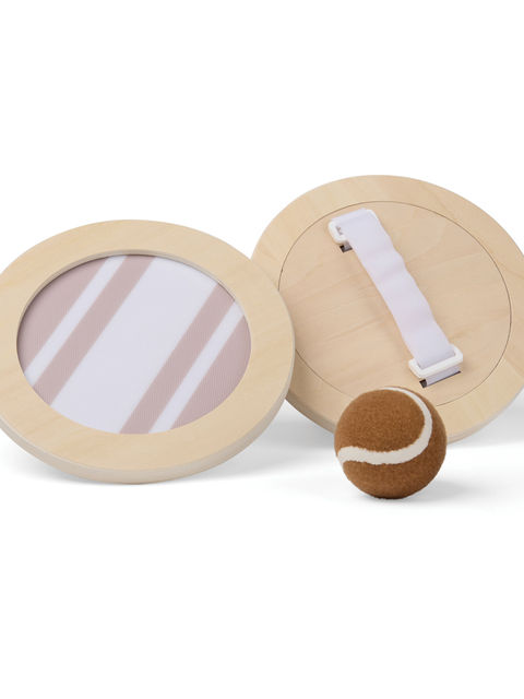 Ideális szabadtéri játék a strandon vagy a parkban. Egy labdát és két tépőzáras elkapót tartalmaz. FSC® rétegelt fából készült. A dizájn sportos, mégis kifinomult, kéttónusú csíkos mintával az elkapókon és egy hozzáillő barna labdával. Praktikusan egy hálós hátlappal ellátott vászontáskában, így könnyen magával viheti. Használati utasítás mellékelve.