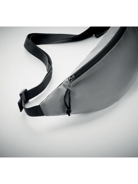 Övtáska az elülső részén magas fényvisszaverő képességű poliészterből, állítható poliészter pánttal.