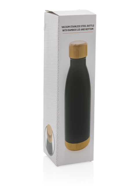 Vákuum rozsdamentes acél palack bambusz alkotóelemekkel