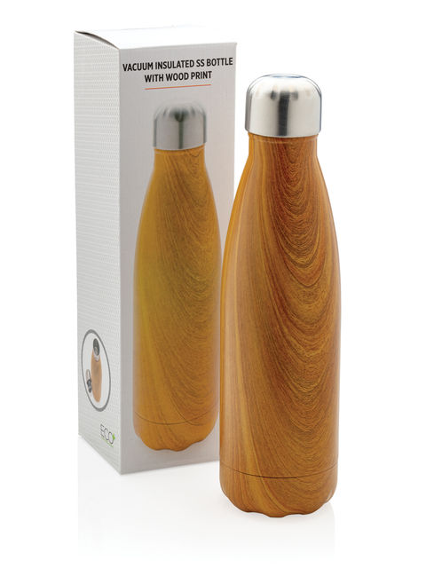 Vákuumszigetelt, rozsdamentes acél palack fa nyomattal
