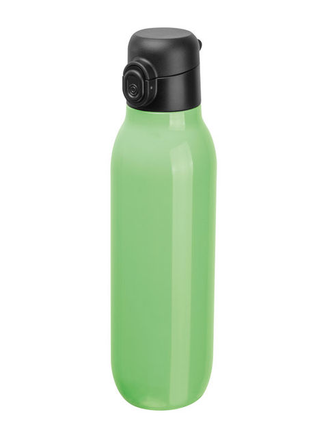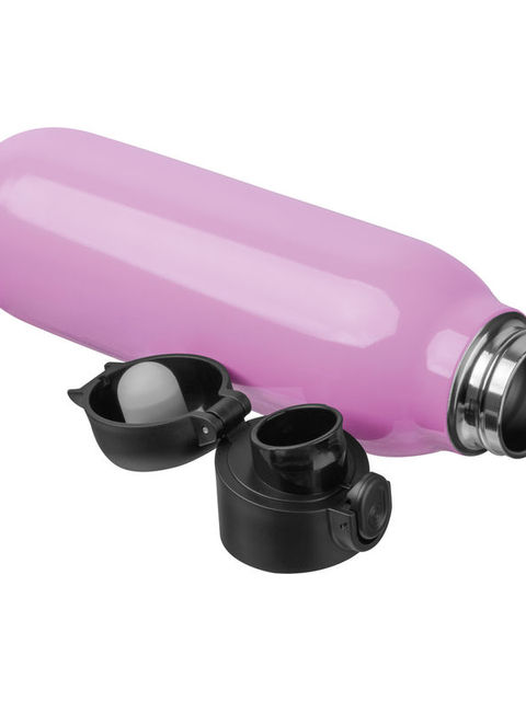 Dupla falú vákuumos rozsdamentes acél palack 500 ml kapacitással. A szivárgásmentes kupak egy kattintással nyílik.