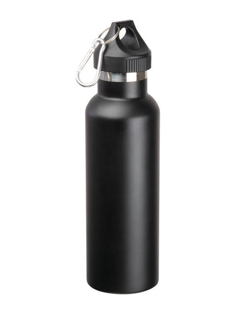 Dupla falú vákuumos kulacs vagy ivópalack rozsdamentes acélból, matt felülettel és szivárgásmentes csavaros záróval, karabinerrel. 500 ml-es kapacitás.