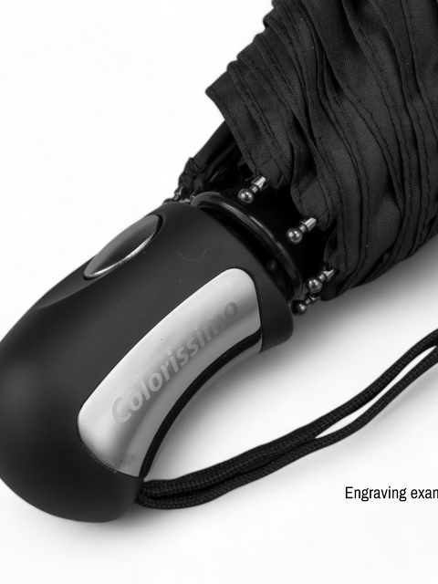 Egy szokatlanul robusztus esernyő a Colorissimo kollekcióból, DAS (Double Automatic System - automatikus záródás és nyitás) és szélvédő rendszerrel. Jellemzői: masszív fémváz, üvegszálas borítású bordák, PU borítású fogantyú, egy fegyverfém színű fémlemezzel kiegészítve, amely tökéletes gravírozáshoz. Az esernyő tökéletesen elfér egy kézitáskában vagy egy hátizsákban. A termék REACH tanúsítvánnyal rendelkezik. Méretek: Összehajtott hossz: 29 cm; Φ 990 mm