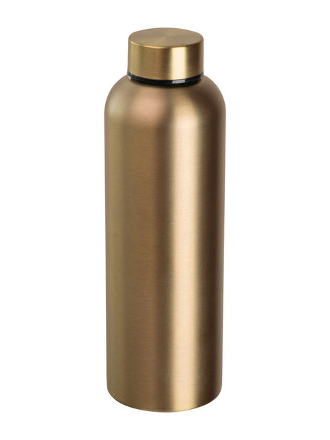 Szivárgásmentes ivópalack újrahasznosított rozsdamentes acélból, 600 ml-es kapacitással és zárható csavaros kupakkal. A palackot fekete dobozban szállítjuk.
